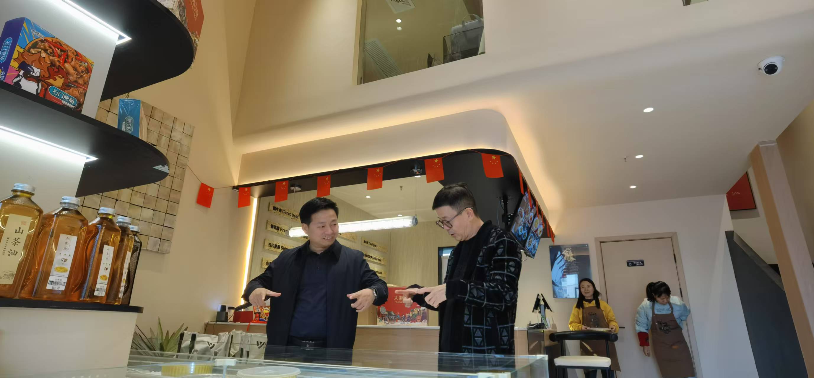 常德市西湖管理區黨委委員、管委會副主任肖渤親臨大湘正食旗幟店九間鋪進行觀摩與指導...